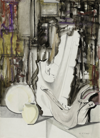 85 Stillleben mit Gipsform und Pferdekiefer, sign 59 K.Kunz, 61,5 x 45 cm Aquarell/Bleistift auf Papier