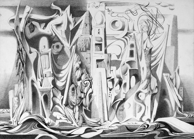 Blatt 21 zum 9. Gesang, sign. Juni 52 K.Kunz, Tusche