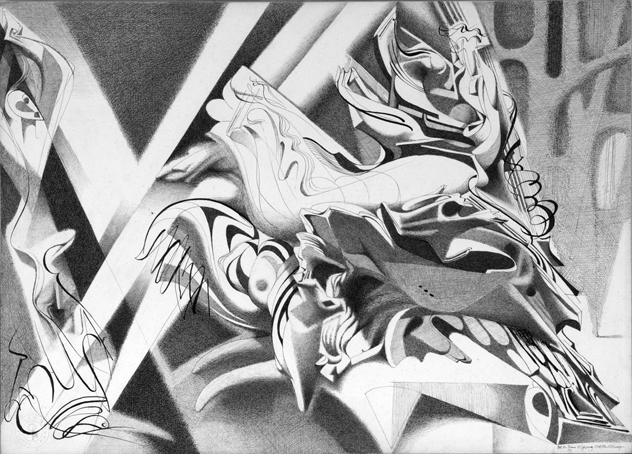 Blatt 31 zum 13. Gesang, sign. Okt.52 K.Kunz, Tusche