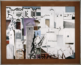 Collage (Zeichnung) auf Hartfaser, 129,5 x 112 cm, sign.