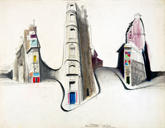 Landschaftszeichnungen In den 60er Jahren reiste Karl Kunz häufig nach Paris, Spanien und Italien. Der Erfolg dieser Reisen richtete sich für ihn danach, wie viele Zeichnungen er mitbrachte. Sie waren Material für seine großen Ölgemälde, deren Motive sich oft leicht zuordnen lassen. Sein besonderes Interesse galt der Architektur, die er, wie auch die Landschaften, schon vor Ort abstrahiert in Bilder umsetzte. |